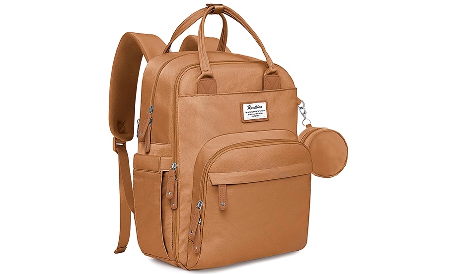 RUVALINO Diaper Bag Backpack-Multifunction Baby Travel Bag with Changing pad, Insulated Bottle Holders & Pacifier Case, Large Capacity, Waterproof, Yellow Leopard(Dark Brown)