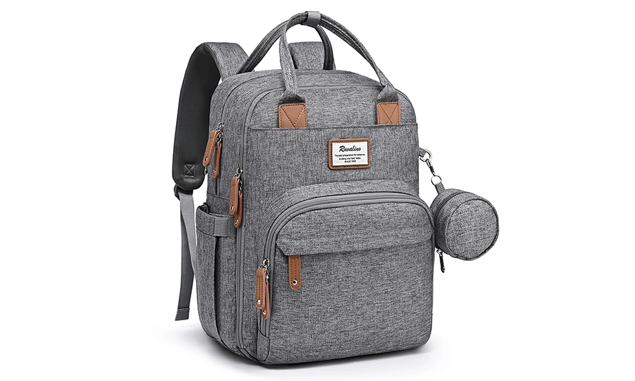 RUVALINO Diaper Bag Backpack, Multifunction Travel Pack Maternity Baby Changing Bags, Large Capacity, Waterproof, Gray(Khaki)