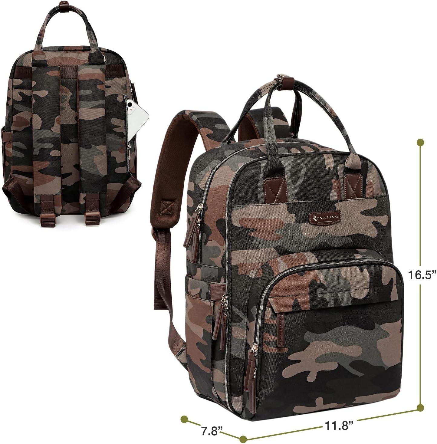 RUVALINO Diaper Bag Backpack-Multifunction Baby Travel Bag with Changing pad, Insulated Bottle Holders & Pacifier Case, Large Capacity, Waterproof, Yellow Leopard(Classic_green Camo)