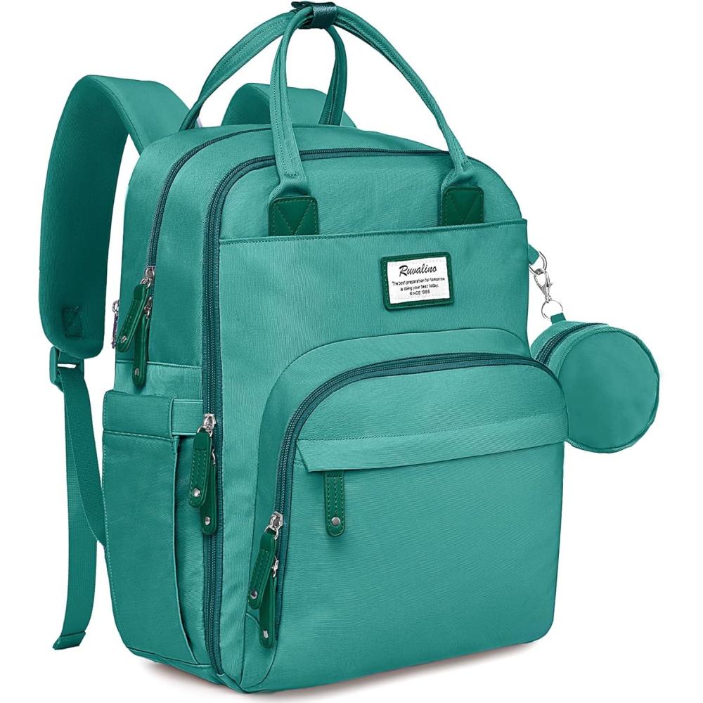 RUVALINO Diaper Bag Backpack-Multifunction Baby Travel Bag with Changing pad, Insulated Bottle Holders & Pacifier Case, Large Capacity, Waterproof, Yellow Leopard(Turquoise)
