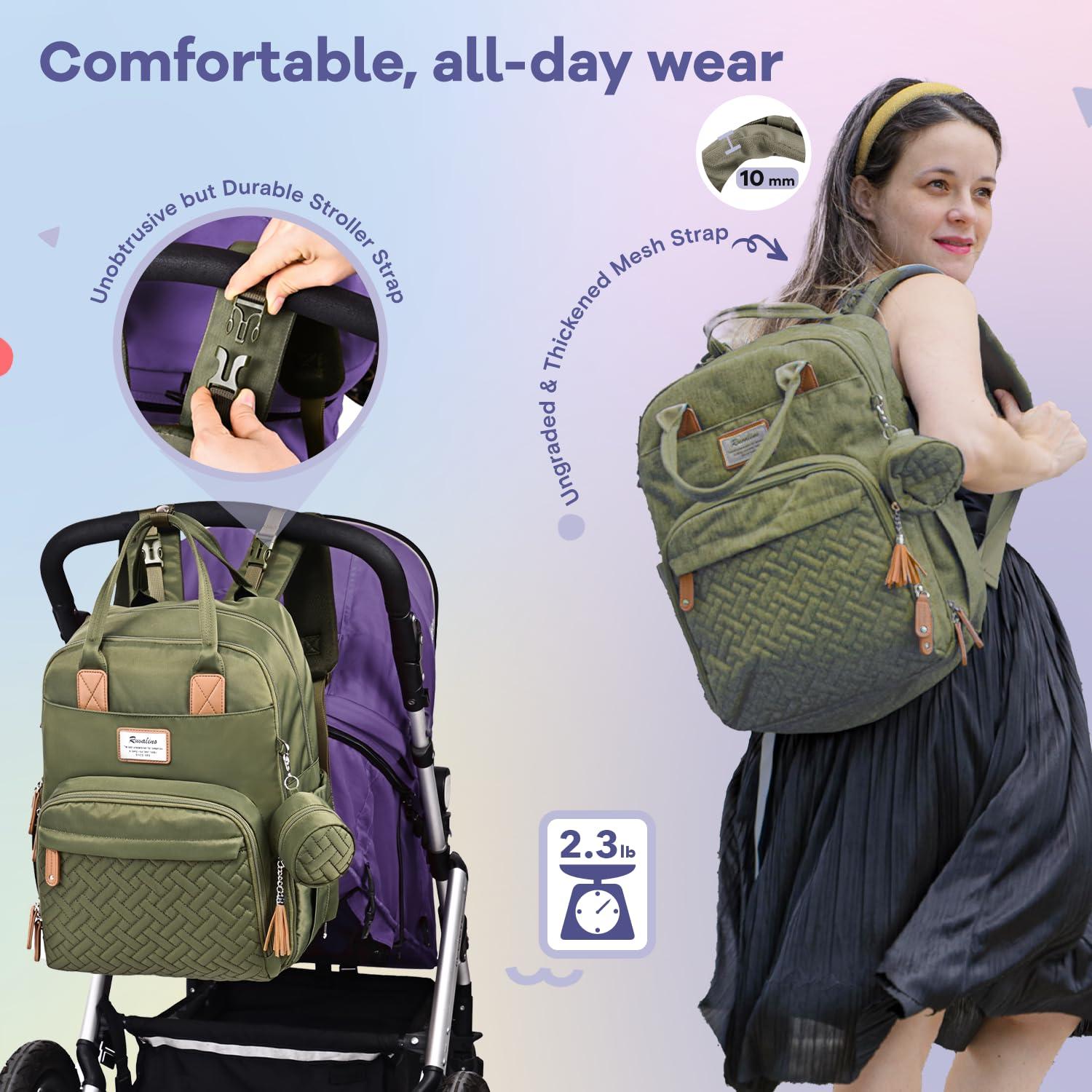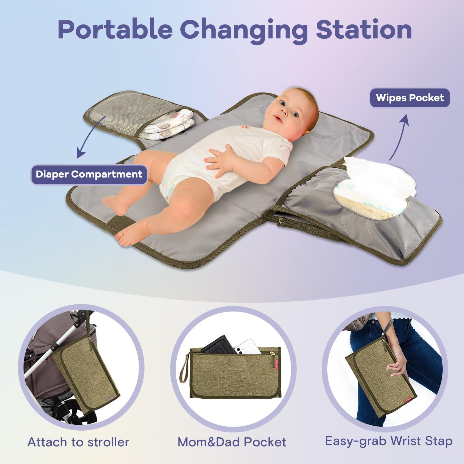 On-the-Go Convenience – Extra-wide opening and easy-glide dual zippers allow for quick, one-handed accessibility. Built-in stroller straps effortlessly attach your baby diaper bag to any stroller. And a portable changing pad holds everything moms & dads need to keep baby clean, dry and happy, as well as a detachable pacifier holder for organizing baby pacifiers or other necessities