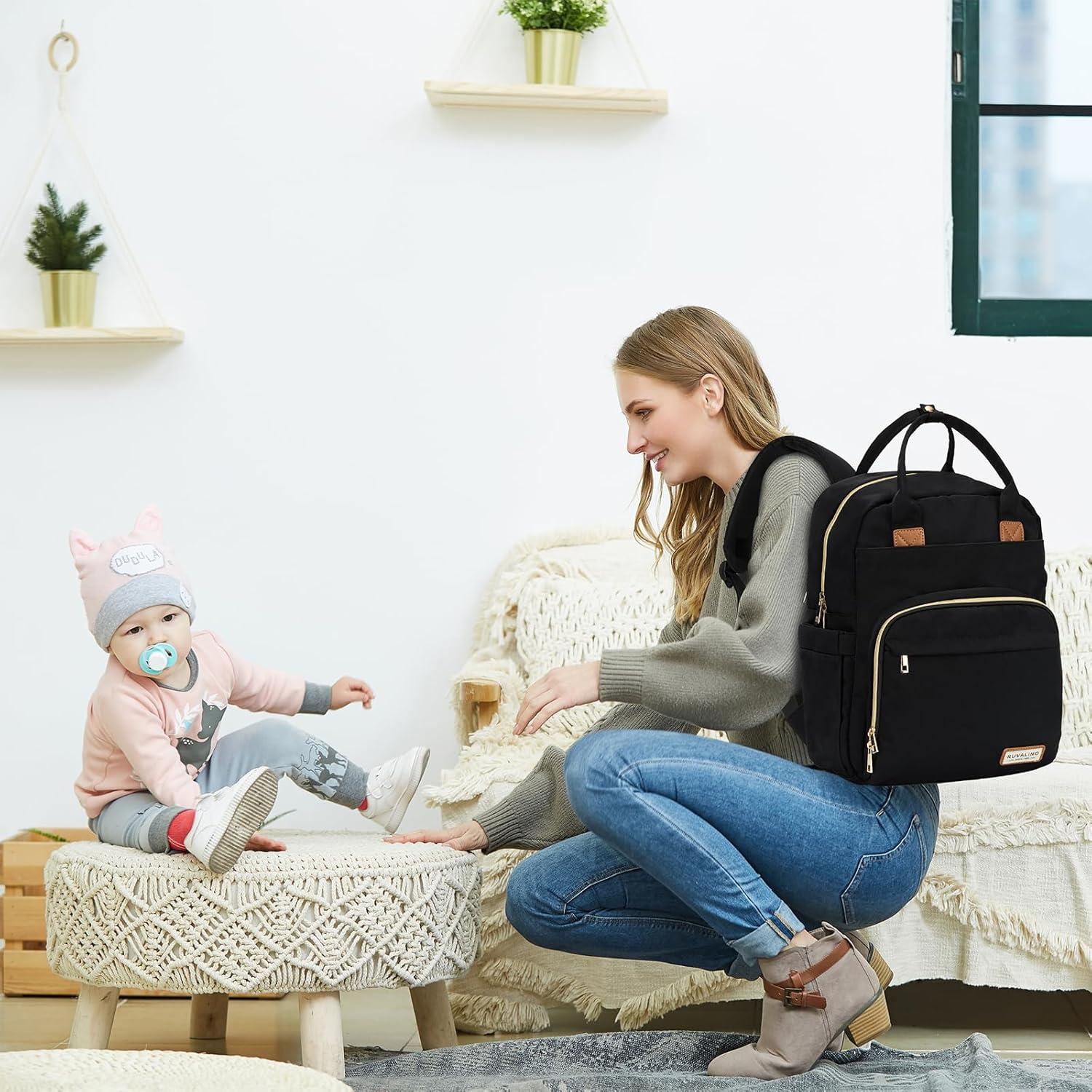 RUVALINO Diaper Bag Backpack, Multifunction Travel Pack Maternity Baby Changing Bags, Large Capacity, Waterproof