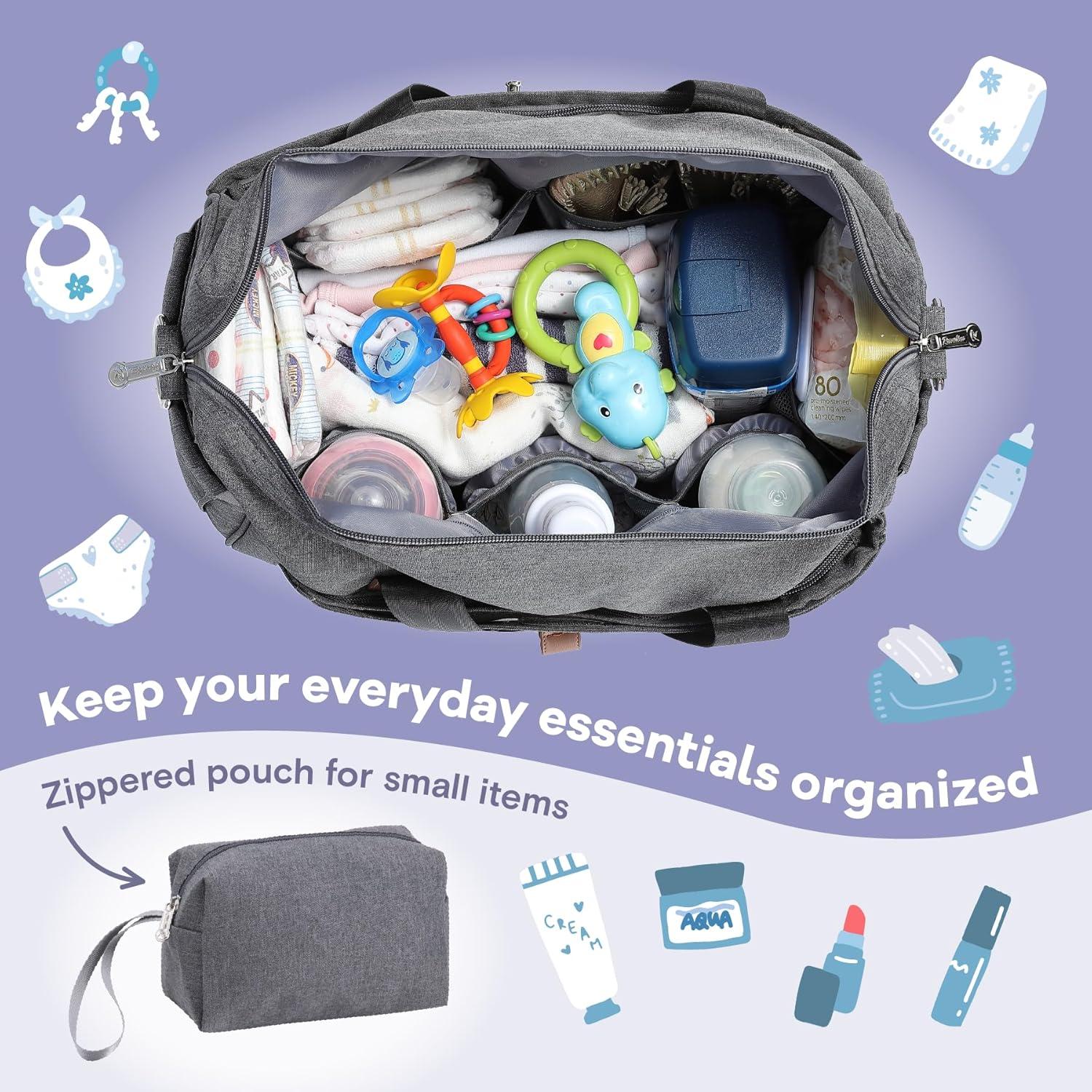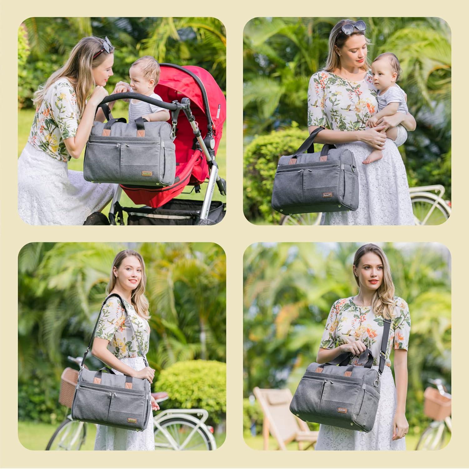 RUVALINO Diaper Bag Tote, Hospital Bag Large Travel Weekender Diaper Changing Messenger for Mom and Dad