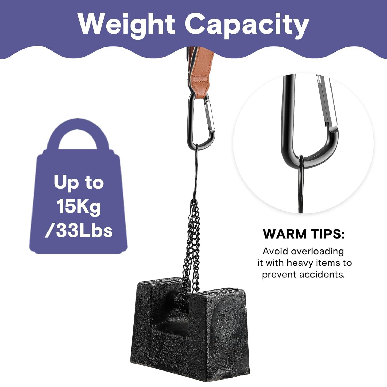 CHIC CONVENIENCE: Crafted in Vegan PU leather with the upgraded, plus-sized strong matte black aluminium carabiner clip, our stroller hooks ooze style and sophistication while bearing more than 30 pounds, allowing you to hang your diaper bag, grocery bags, shopping basket, or purse simultaneously. They're gentle on your stroller and won't scratch or damage your stroller handle