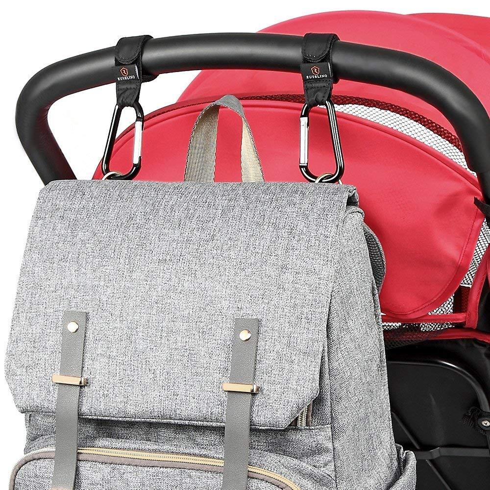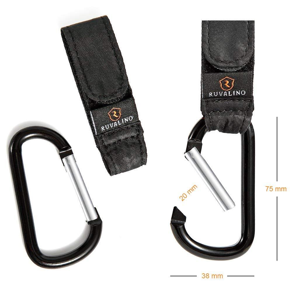 Stroller Hooks, RUVALINO Universal Multi-Purpose Stroller Clips for Your Buggy, Pushchair or Pram, Black, 2 Pack
